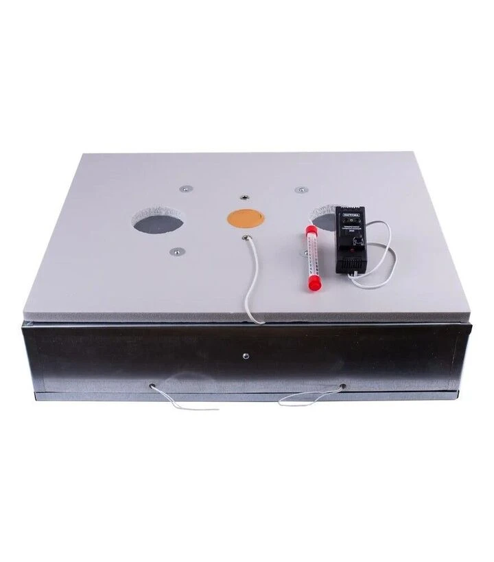 Корпус инкубатора сочетает металлические боковины с лёгким пенопластовым дном и крышкой из полистирола. Это позволяет объединить прочность и хорошую теплоизоляцию. Температура регулируется вручную, а влажность поддерживается естественным путём через резервуары для воды.
