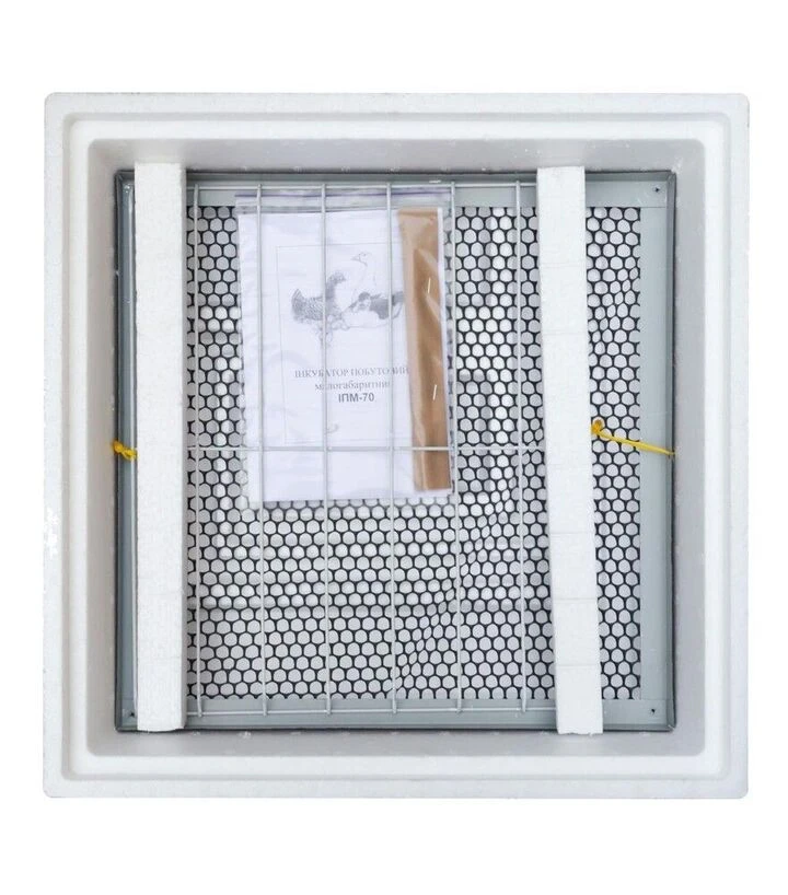 Инкубатор имеет классическую простую конструкцию: корпус из пенопласта, ламповый нагрев, механическую регулировку температуры. Подходит для домашнего использования без необходимости в электронном дисплее или автоматических функциях. Надёжен и понятен в ежедневной эксплуатации.
