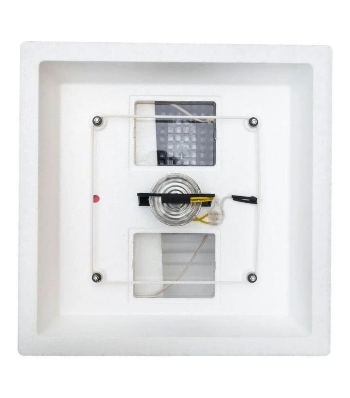 Теновый нагревательный элемент (тепловой шнур) обеспечивает равномерное тепло по всему объёму камеры. Температура регулируется механически, без электроники - только поворотом ручки терморегулятора. Контроль осуществляется с помощью градусника. Влажность создаётся путём испарения воды из канавок на дне инкубатора. Переворот яиц - ручной, с обязательной маркировкой. Оптимальное место для использования - отапливаемое помещение с температурой от +15°C.