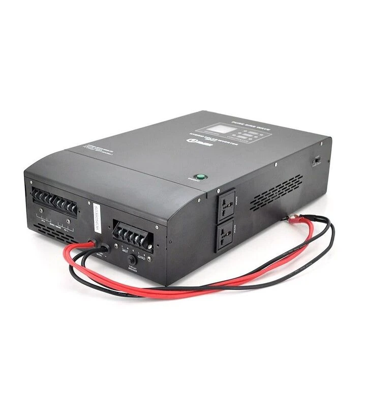 Инвертор сочетает зарядное устройство, контроллер заряда MPPT и инвертор в одном корпусе. Работает в нескольких режимах - с сетью, без сети, с аккумуляторами или от солнца. Имеет защиту от перегрузки и короткого замыкания.