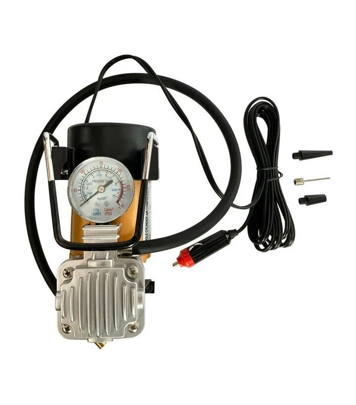 Автомобильный компрессор VULKAN ТС-518 предназначен для подкачки шин легковых автомобилей, небольших микроавтобусов, прицепов и другого транспорта с бортовой сетью 12 В. Переносная конструкция, прочный корпус и удобная ручка делают его подходящим для хранения в багажнике и использования в дороге. Производительность до 26 л/мин позволяет оперативно восстановить давление в шинах, а в комплект входит набор аксессуаров для работы с разными ниппелями и запасной предохранитель для защиты электрической цепи.