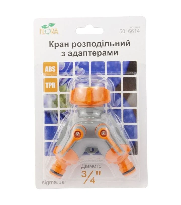 Отзывы Распределительный кран с адаптерами Flora ½" 2 выхода на кран ¾" с латунированной резьбой (5016614)