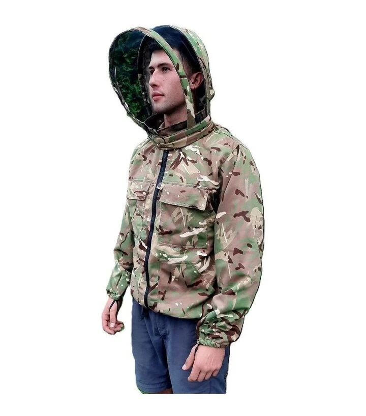 Камуфляжная куртка пчеловода типа 3 в 1 предназначена для универсальной защиты при работе на пасеке в различных условиях. Она подходит для осмотров ульев, ухода за пчелиными семьями и вспомогательных работ, когда требуется гибкость в использовании защитной одежды. Куртка изготовлена из хлопчатобумажной ткани, которая хорошо пропускает воздух и обеспечивает комфорт во время работы. Камуфляжный дизайн делает изделие практичным для ежедневного использования.