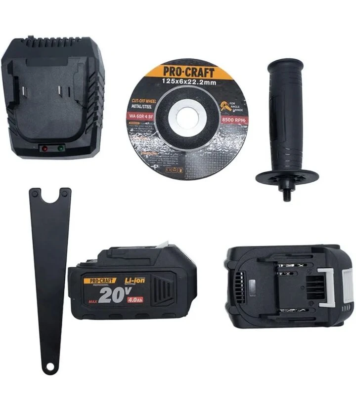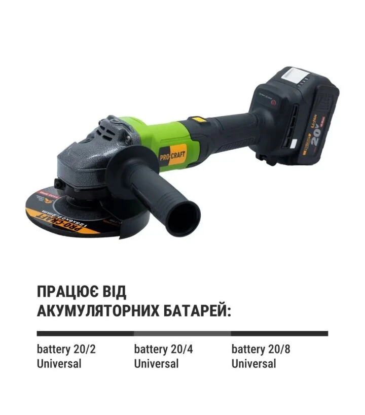 Procraft PGA-20 - аккумуляторная болгарка с полной комплектацией для ежедневных задач.