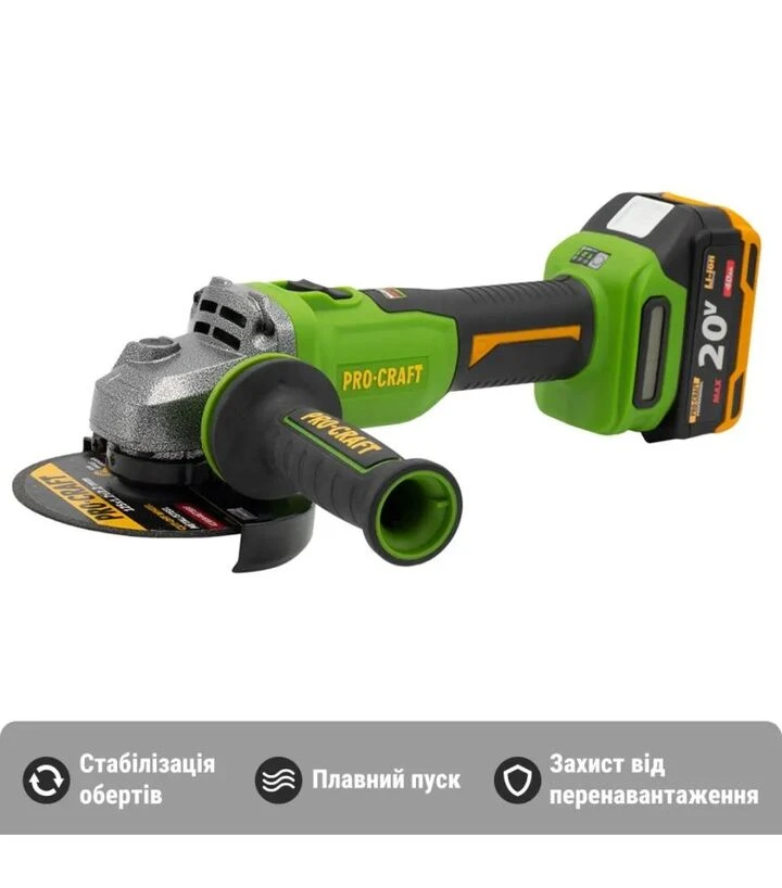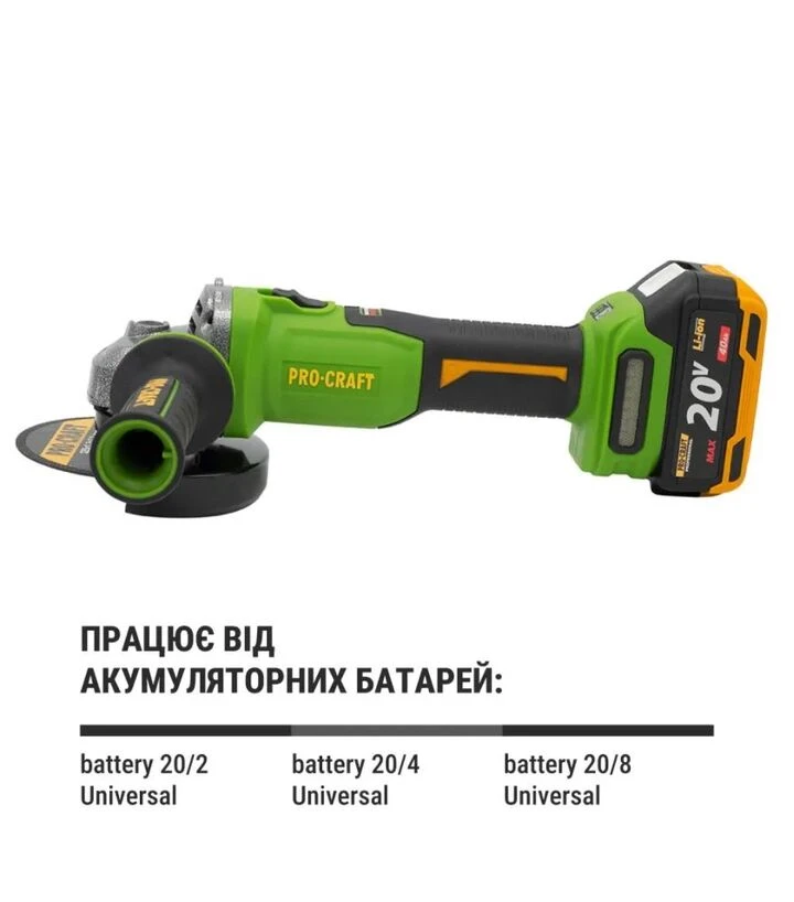 Procraft PWA-220 - аккумуляторная болгарка с полной комплектацией и возможностью автономной работы.