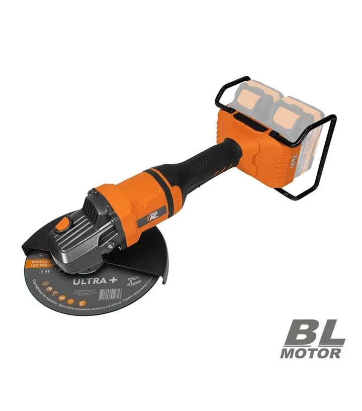 Модель ориентирована на пользователей, которым нужна мощная, но автономная «болгарка». Большой диск обеспечивает глубокие пропилы и очистку больших поверхностей. Бесщёточный двигатель работает стабильно. Модель требует подключения двух АКБ одновременно. Дополнительная рукоять и кожух повышают безопасность.