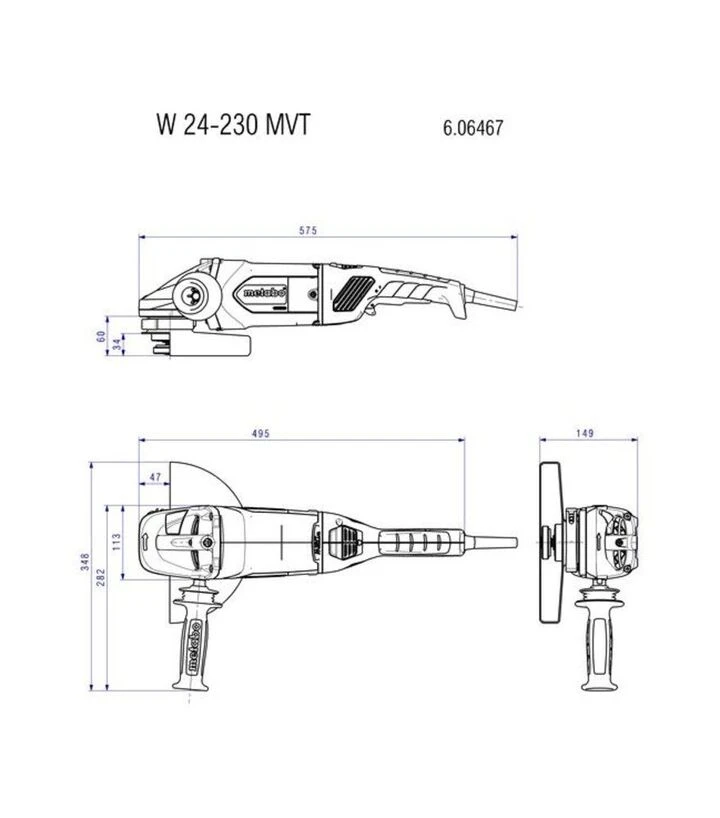 Угловая шлифмашина Metabo W 24-230 MVT, 2400 Вт (606467000) предназначена для резки, шлифования и зачистки металла, камня и других строительных материалов. Инструмент работает от сети 230 В и использует диски диаметром 230 мм. Мощный двигатель Metabo Marathon на 2400 Вт обеспечивает стабильную производительность при выполнении интенсивных работ. Максимальная скорость вращения до 6600 об/мин позволяет выполнять резку материалов большой толщины и обработку больших поверхностей. Конструкция инструмента предусматривает прочный редуктор и эргономичный корпус, что способствует стабильному контролю во время эксплуатации. Система Metabo VibraTech снижает уровень вибрации и нагрузку на руки оператора. Поворотная основная рукоятка и дополнительная антивибрационная рукоятка позволяют адаптировать инструмент к различным рабочим положениям.