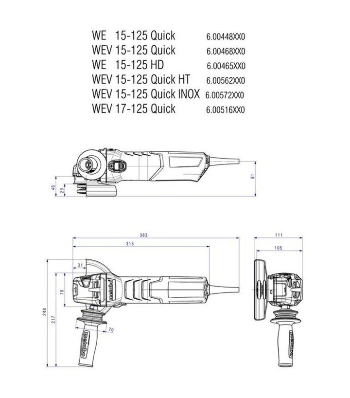 Metabo WE 15-125 Quick - это мощная и надежная угловая шлифмашина для профессионального использования. Благодаря сочетанию высокой производительности, современных систем защиты и эргономичной конструкции инструмент обеспечивает эффективную работу даже в сложных условиях и подходит для широкого спектра шлифовальных и отрезных работ.