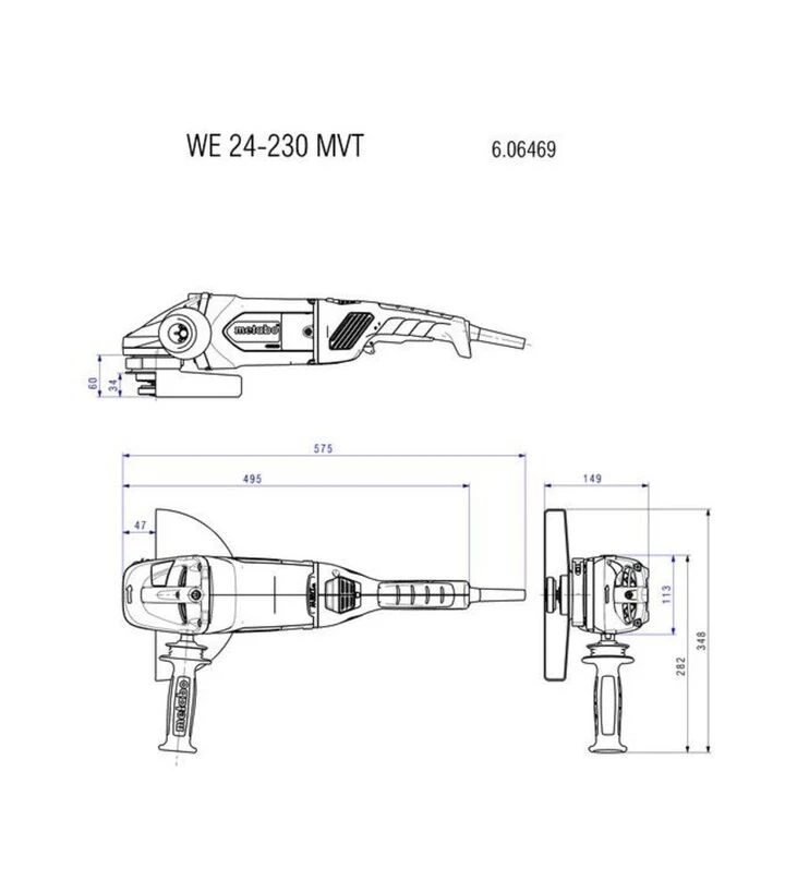 Угловая шлифмашина Metabo WE 24-230 MVT, 2400 Вт, плавный пуск (606469000) предназначена для резки, шлифования и зачистки металла, камня и других строительных материалов. Инструмент работает от сети 230 В и использует шлифовальные или отрезные диски диаметром 230 мм. Мощный двигатель Metabo Marathon на 2400 Вт обеспечивает стабильную производительность во время интенсивных нагрузок и длительного использования. Максимальная скорость вращения до 6600 об/мин позволяет выполнять резку материалов большой толщины и обрабатывать значительные площади поверхности. Благодаря системе Metabo VibraTech уменьшается уровень вибрации, что способствует более комфортной работе. Плавный пуск с ограничением пускового тока помогает избежать резкого рывка при запуске. Конструкция инструмента предусматривает поворотную основную рукоятку, регулируемый защитный кожух и электронные системы защиты двигателя.