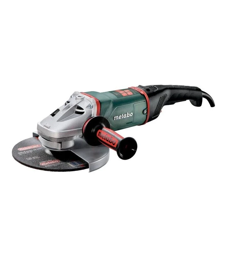 Угловая шлифмашина Metabo WE 26-230 MVT Quick, 2600 Вт, плавный пуск (606475000) - сетевой электроинструмент для резки, шлифования и обработки металла, камня и других твёрдых материалов. Инструмент рассчитан на работу с дисками диаметром 230 мм и оснащён мощным двигателем 2600 Вт, который обеспечивает стабильную производительность даже под нагрузкой. Конструкция предусматривает систему плавного пуска, которая уменьшает рывок при запуске и помогает лучше контролировать инструмент. Модель оснащена антивибрационной системой Metabo VibraTech, которая снижает нагрузку на руки оператора во время длительной работы. Поворотная основная рукоятка и возможность установки дополнительной ручки в нескольких положениях обеспечивают удобный хват при различных видах работ. Благодаря системе Metabo Quick замена диска выполняется без использования инструментов. Машина подходит для интенсивного использования в строительстве, мастерских и на производстве.