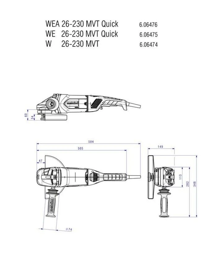 Угловая шлифмашина Metabo WE 26-230 MVT Quick, 2600 Вт, плавный пуск (606475000) предназначена для выполнения режущих и шлифовальных работ с использованием дисков большого диаметра. Мощный двигатель, система защиты от пыли, электронные системы безопасности и антивибрационная конструкция обеспечивают стабильную работу инструмента. Сочетание систем Metabo Marathon, Metabo Quick и VibraTech позволяет использовать инструмент для интенсивных работ в мастерских, на строительных площадках и в производственных условиях.