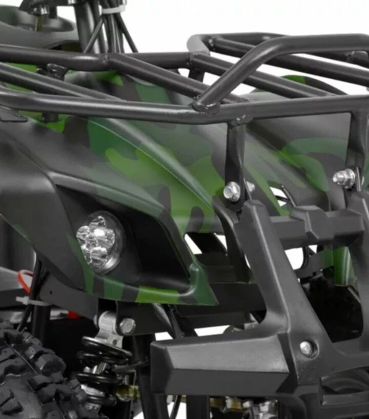 Квадроцикл HECHT 56800 ARMY оснащен передними фарами, которые помогают обеспечивать видимость во время движения в сумерках или вечернее время, когда естественное освещение снижается. Модель оснащена дисковыми тормозами - это повышает безопасность во время движения и контроль скорости. Размер задних колес - 6 дюймов, что способствует равномерному и стабильному движению по твердым поверхностям, а минимальный радиус разворота составляет 6 см, что позволяет легко маневрировать даже в небольших пространствах без лишних усилий со стороны пользователя.