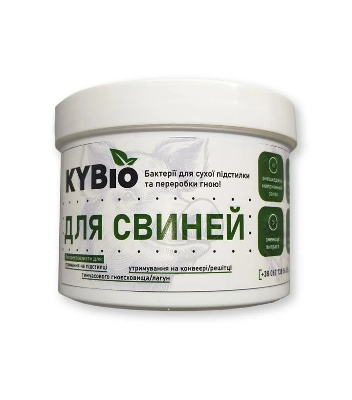 KYBio помогает поддерживать чистоту в свинарнике с меньшими усилиями. Снижает затраты на уборку, улучшает санитарные условия, а также обеспечивает переработку навоза в полезное удобрение для поля или огорода.