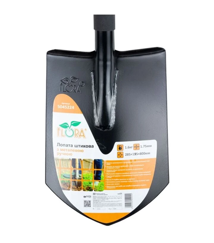 Лопата штыковая Flora с металлической ручкой 285×195×800мм, 1,6кг (5045224)