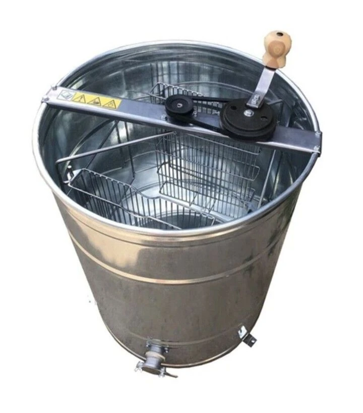 Медогонка предназначена для откачивания мёда из рамок в домашних и небольших пасечных хозяйствах. Конструкция из оцинкованной стали обеспечивает устойчивость к коррозии и механическим воздействиям во время сезонных работ. Поворотные кассеты позволяют откачивать мёд с обеих сторон рамки без её извлечения, что упрощает процесс и экономит время. Ременной привод обеспечивает плавный ход и равномерное вращение, что важно для сохранения сот в рабочем состоянии.