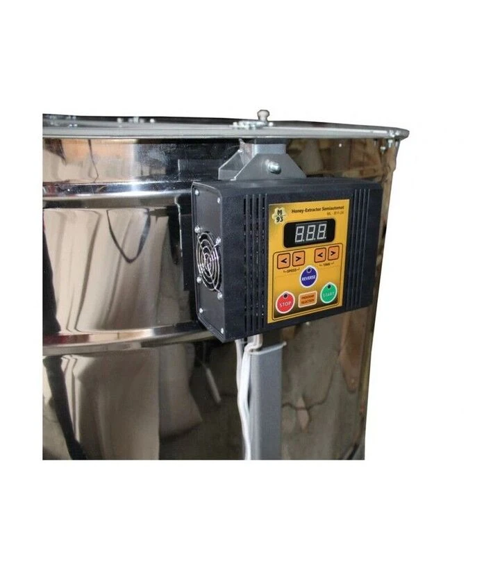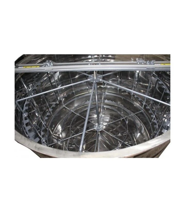 Медогонка предназначена для откачки мёда радиальным способом в хозяйствах с большим объёмом работ. Конструкция позволяет одновременно работать с рамками различных типов без их перестановки. Бак изготовлен из пищевой нержавеющей стали, пригодной для контакта с мёдом и удобной в очистке. Автоматическое управление обеспечивает стабильную работу с мёдом различной плотности, а радиальное размещение рамок снижает риск повреждения сотов. Медогонка рассчитана на длительную эксплуатацию в сезон.