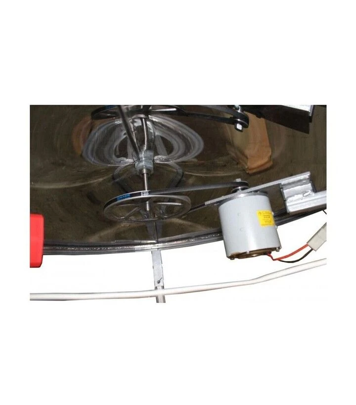 Рамки устанавливаются по радиусу внутри бака. После запуска выбранной программы ротор начинает вращаться, и мёд под действием центробежной силы выходит из сотов и стекает вниз бака. Коническая форма способствует накоплению мёда в зоне слива. Скорость и направление вращения задаются автоматически или вручную через блок управления.