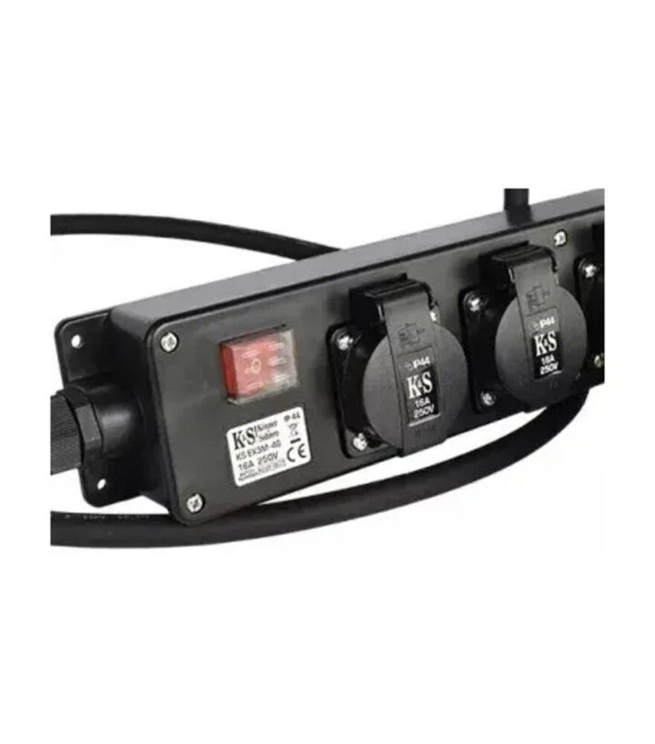 KS EX3M-4S позволяет распределить мощность от одной силовой розетки генератора между несколькими приборами, что удобно для работ на открытом воздухе или в временных зонах питания. Кабель с медным сечением 2,5 мм² рассчитан на длительные нагрузки, а четыре розетки Schuko оснащены дополнительными шторками для более безопасного использования. Класс защиты IP44 делает адаптер пригодным для применения в условиях влажности или пыли.