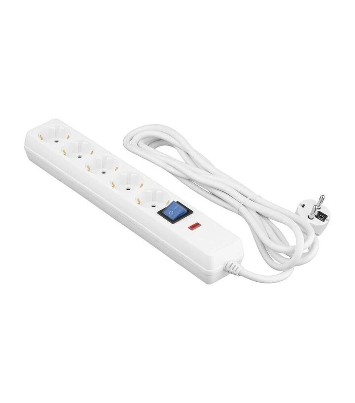 Удлинитель сочетает базовую конструкцию с пятью розетками и защитным элементом, который реагирует на скачки напряжения. Кабель с проводником сечением 1,5 мм² изготовлен из материалов, предназначенных для длительной нагрузки. Корпус выполнен в белом цвете и имеет простую форму, что облегчает установку в разных местах. Модель ориентирована на повседневные задачи и обеспечивает стабильное питание подключенных устройств.