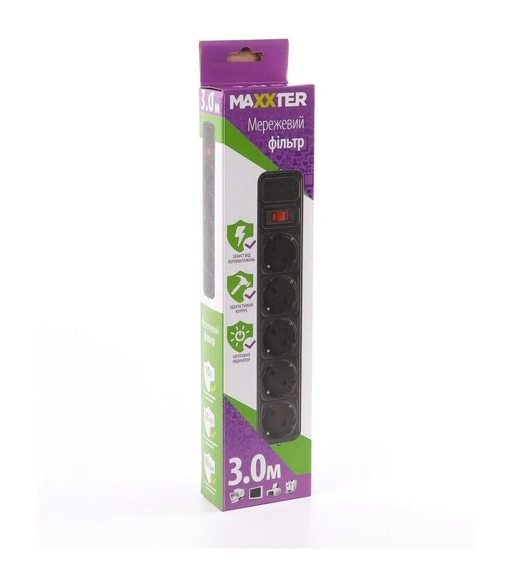 Сетевой удлинитель-фильтр Maxxter - это гарантированная безопасность вашей техники и удобство в использовании каждый день.