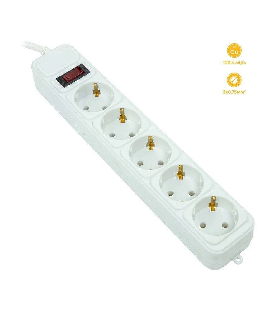 Сетевой удлинитель PowerPlant JY-1056/7B оснащён 5 розетками с заземлением (Schuko), что позволяет подключать различные бытовые и компьютерные устройства. Кабель сечением 3 × 0,75 мм², изготовленный из меди, обеспечивает надёжную передачу мощности до 1650 Вт. Механический выключатель позволяет быстро отключить удлинитель, когда он не используется, а защитные шторки на розетках предотвращают несанкционированный контакт с электрическими элементами.