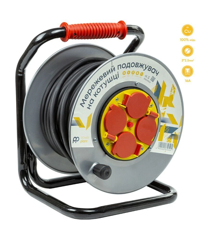 Сетевой удлинитель на катушке PowerPlant позволяет подвести питание туда, где стационарных розеток нет рядом: во дворе, мастерской, гараже, на небольшом строительном объекте или в фермерском хозяйстве. Кабель длиной 25 м с медными жилами 3x2,5 мм² рассчитан на нагрузку до 16 А и максимальную мощность до 3500 Вт. Катушка с металлическим корпусом, четыре розетки евростандарта с заземлением и степень защиты IP44 делают удлинитель подходящим для работы в бытовых и хозяйственных условиях.
