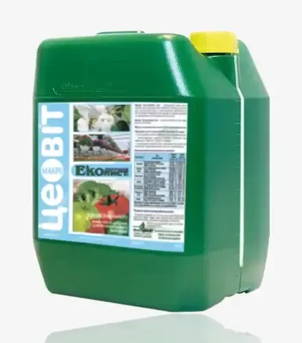 Цеовит Экологический Лист – универсальный жидкий комплекс удобрений для внекорневого питания, усиленных стимулирующим действием регуляторов роста, а также комплекса органических кислот и биополимеров микробных полисахаридов, повышающий урожайность с натуральными пестицидными свойствами РКД и хелатированным комплексом ЭДТА.