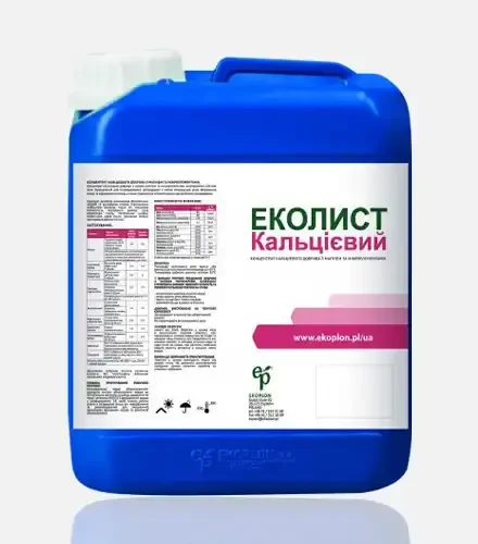 Ekolist Кальцій ефективно покращує якість і товарність плодів.Підвищує урожайність і зміцнює рослини проти хвороб та екологічних викликів.Рідка суспензія забезпечує легкість у застосуванні та дозволяє отримати однорідний розчин.Також допомагає запобігти різним захворюванням, пов'язаним із недоліком кальцію.