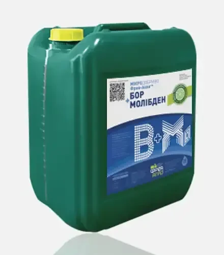 Наименование и содержание действующего вещества: B, 140 г/л; Mo, 6 г/л; N, 60 г/л; P2O5, 17 г/л