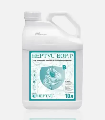 Нертус Бор — высококонцентрированное жидкое борное удобрение, предназначенное для подпитки сельскохозяйственных культур в течение периода вегетации. Этот препарат имеет органическую форму, обеспечивающую легкое усвоение бора растениями.
