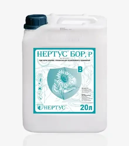 Нертус Бор — высококонцентрированное жидкое борное удобрение, предназначенное для подпитки сельскохозяйственных культур в течение периода вегетации. Этот препарат имеет органическую форму, обеспечивающую легкое усвоение бора растениями.
