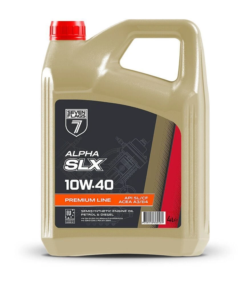 7FLAGS ALPHA SLX 10W-40 - полусинтетическое моторное масло для бензиновых и дизельных двигателей легковых автомобилей, микроавтобусов и лёгкого коммерческого транспорта. Обеспечивает стабильное смазывание и лёгкий холодный запуск, поддерживает чистоту двигателя и снижает износ при работе в смешанном режиме. Может применяться в моторах с турбонаддувом и каталитическим нейтрализатором согласно рекомендациям производителей.