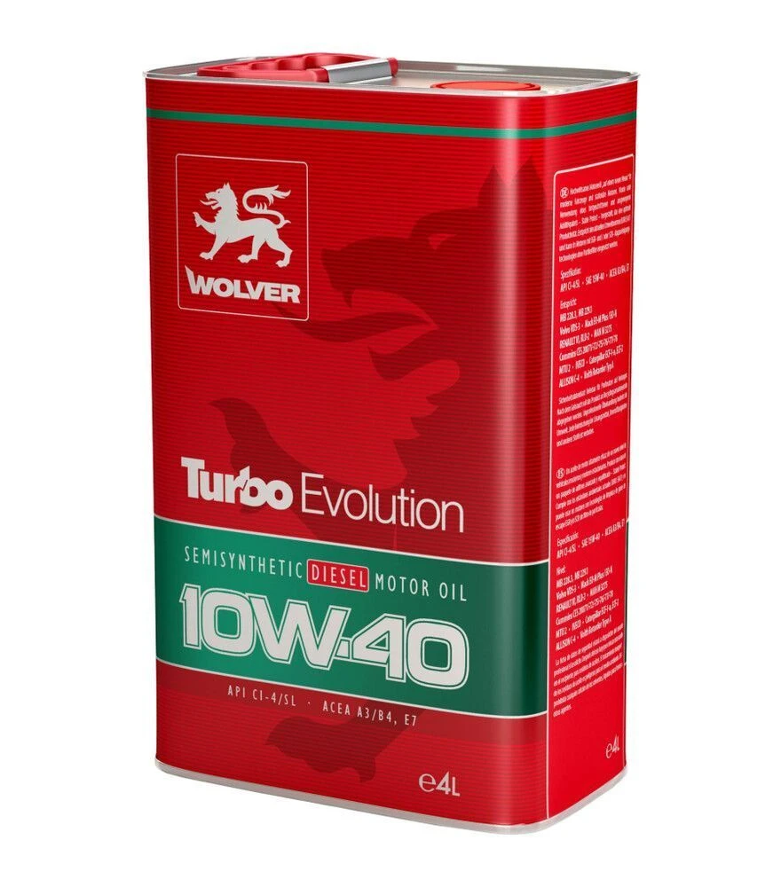 WOLVER TURBO EVOLUTION 10W-40 - полусинтетическое моторное масло для дизельных и бензиновых двигателей грузовой, коммерческой, карьерной и сельскохозяйственной техники. Создано на основе усовершенствованного пакета присадок Stable Protect, обеспечивает термическую стабильность, защиту от износа и чистоту двигателя при длительных интервалах эксплуатации. Подходит для моторов с технологиями EGR, SCR, турбонаддувом и каталитическим нейтрализатором, без использования DPF.