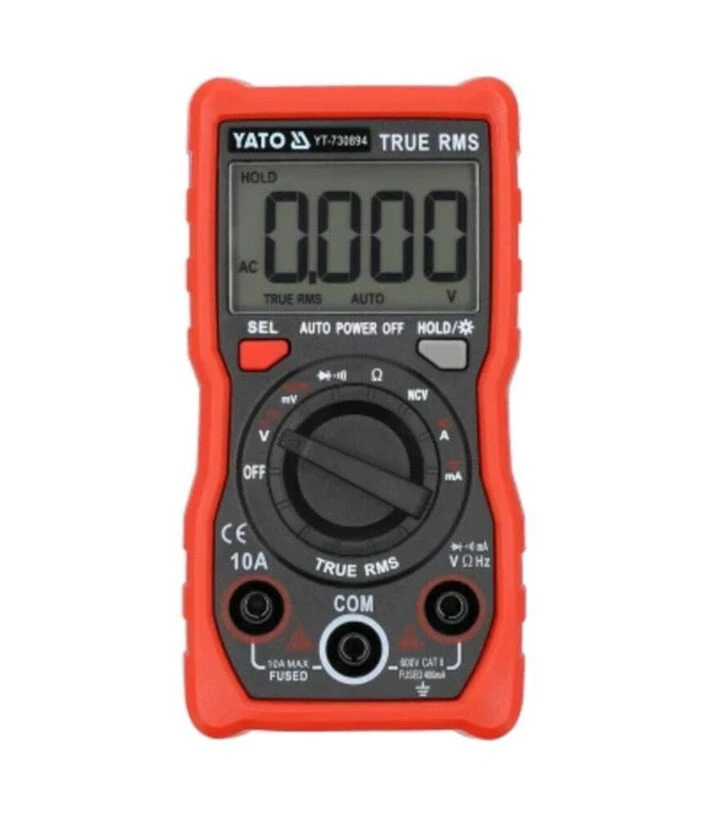 Мультиметр электрических параметров YATO TRUE RMS сочетает удобство, точность и компактность, обеспечивая стабильные результаты при ежедневных измерениях.