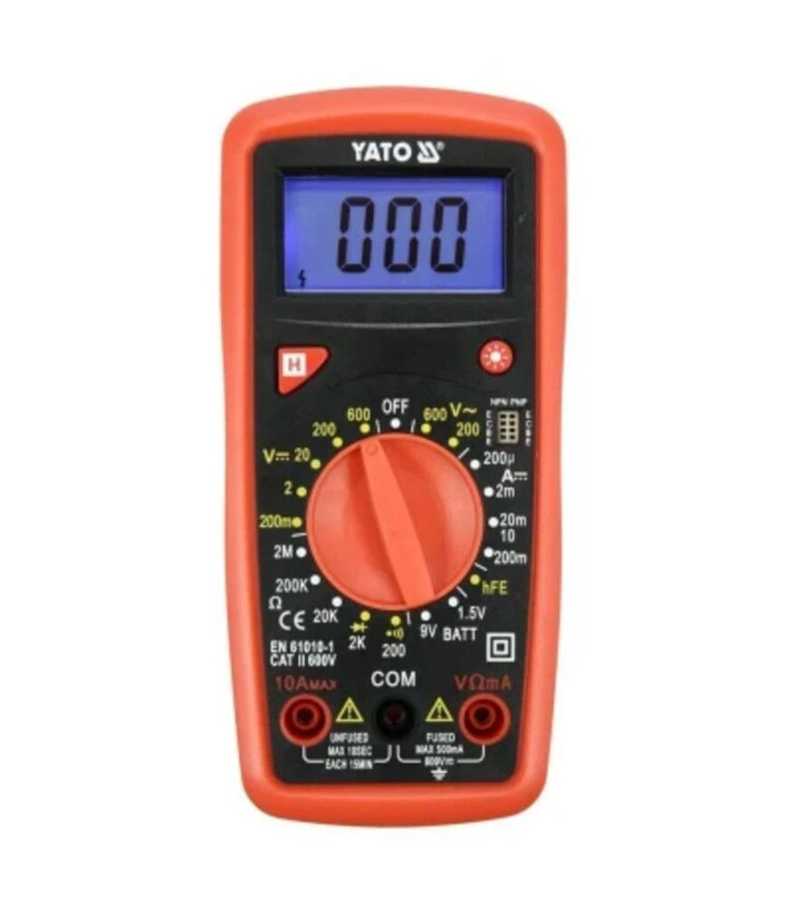 Мультиметр электрических параметров YATO сочетает простоту, компактность и удобство эксплуатации. Это надежный помощник для выполнения основных измерений в быту и сервисных работах.