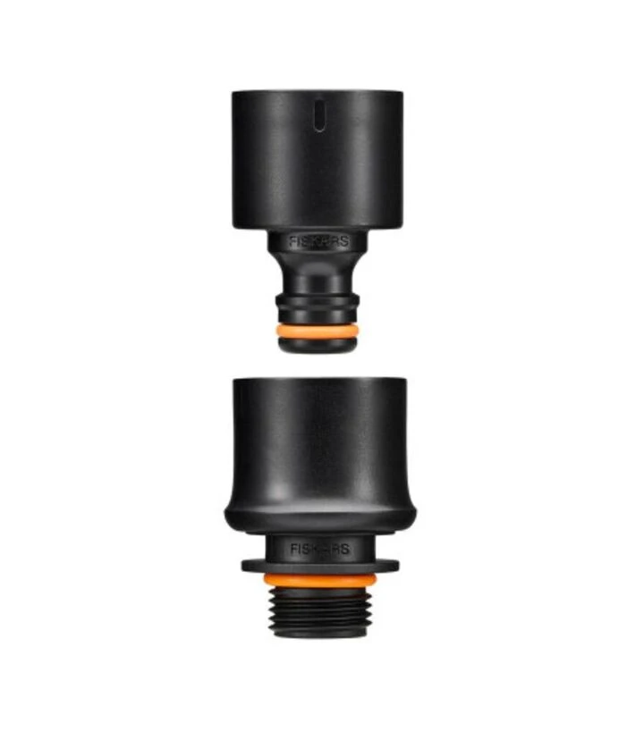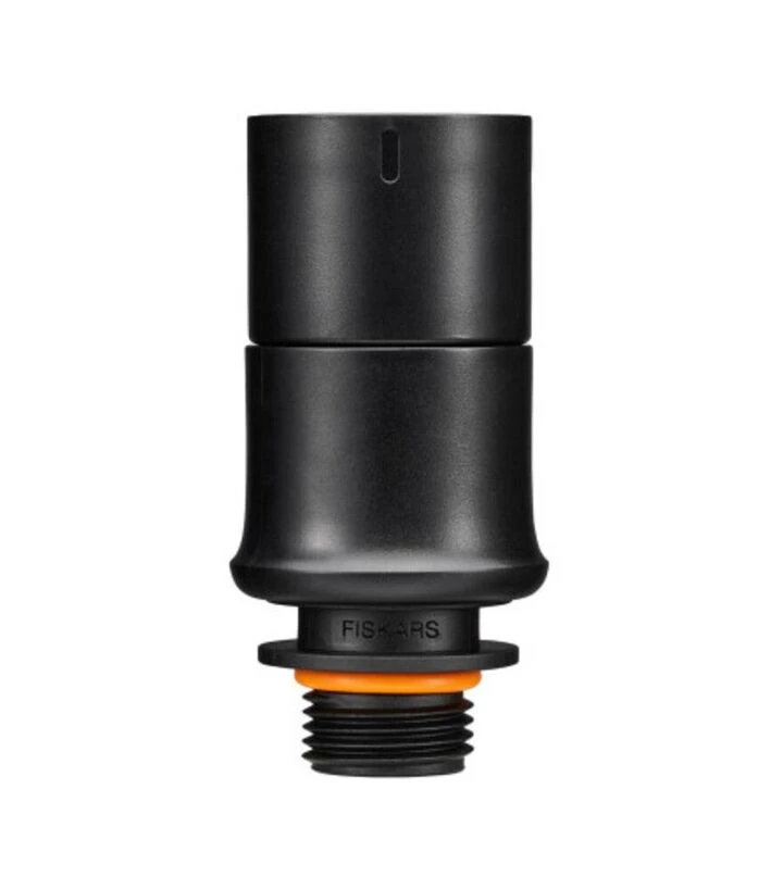 Один адаптер с резьбой ½” подключается к стандартному основанию дождевателя, второй - к поливочному инструменту Fiskars. После этого элементы легко соединяются между собой, образуя неподвижную точку полива. Адаптеры можно комбинировать между собой или использовать отдельно - в зависимости от высоты и расположения растений.