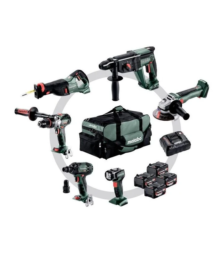 Metabo Combo 6.1 (685211000) объединяет ударную дрель, гайковёрт, перфоратор, шлифмашину, сабельную пилу и фонарь в рамках системы 18 В. Четыре аккумулятора 4,0 А·ч позволяют работать без длительных перерывов, а сумка упрощает транспортировку. Комплект рассчитан на регулярное использование в строительстве и монтаже.