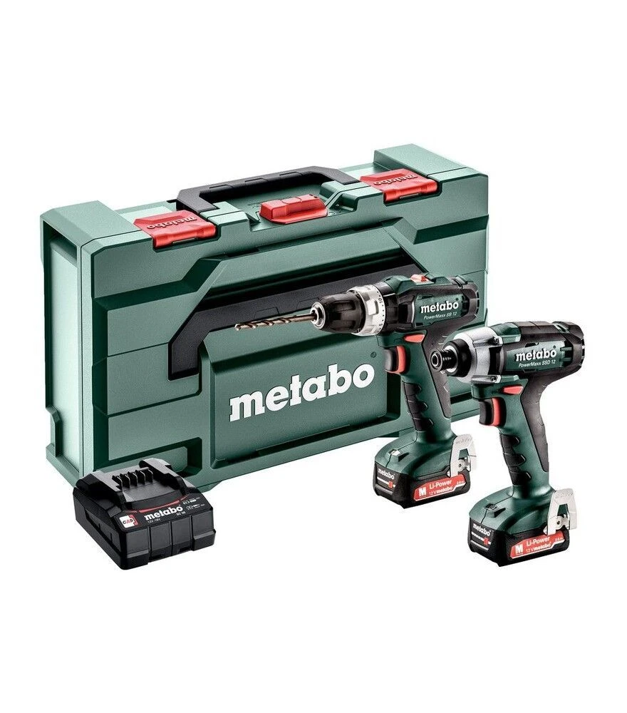 Набор аккумуляторного инструмента Metabo Combo Set 2.7.2 12В SB+SSD (685167000)Набор аккумуляторного инструмента Metabo Combo Set 2.7.2 12В SB+SSD (685167000) предназначен для монтажных работ, сверления и работы с различными типами крепежа. В комплект входят аккумуляторная ударная дрель PowerMaxx SB 12 и ударный гайковёрт PowerMaxx SSD 12, два аккумулятора LiPOWER 12 В 2,0 А·ч, зарядное устройство SC 36 и кейс metaBOX 145. Сочетание ударного режима в дрели и ударного механизма в гайковёрте расширяет возможности использования инструмента в различных материалах.Metabo применяет технологию Ultra-M для контроля батареи, оптимальной зарядки и стабильной работы аккумуляторных блоков. Система рассчитана на длительный ресурс и поддержку производительности на протяжении всего цикла эксплуатации.