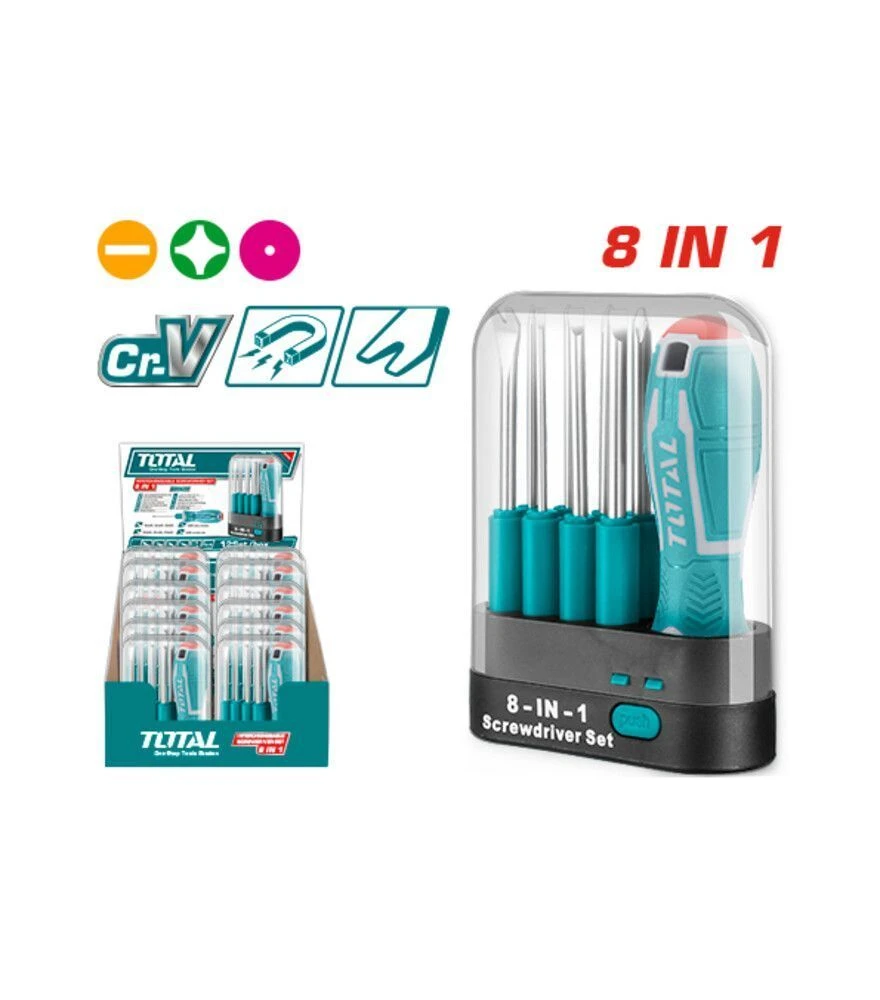 Набор отвёрток TOTAL THT250906 сочетает практичность, разнообразие инструментов и удобство при выполнении точных механических работ.