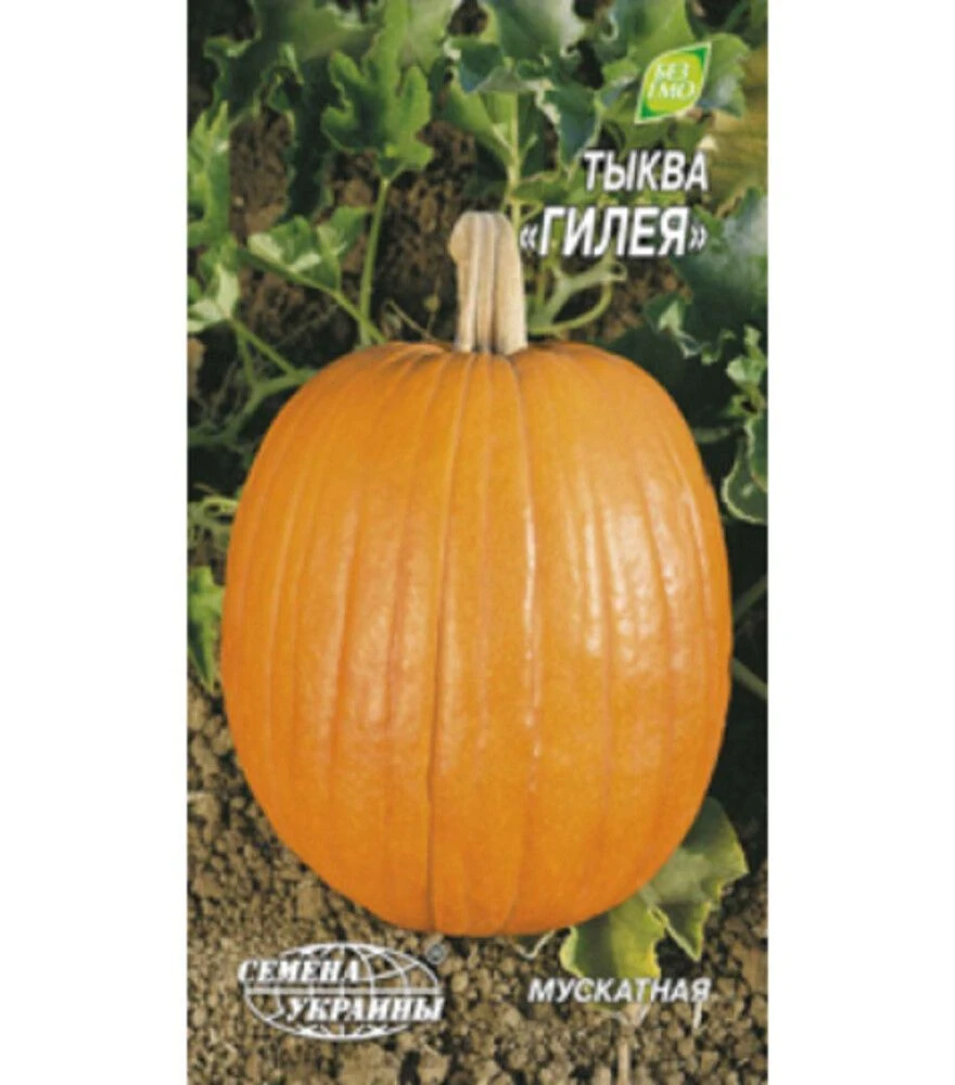 Тыква Гилея - среднеспелый мускатный сорт с периодом вегетации 90–110 дней. Формирует цилиндрически-овальные плоды оранжевого цвета с розовым оттенком, массой 6–9 кг. Мякоть толстая, хрустящая, сочная, красно-оранжевая. Сорт универсального назначения: подходит для переработки и домашней кулинарии. Предназначен для выращивания в открытом грунте.