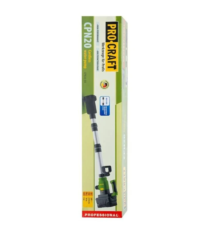 ProCraft CPN-20 - аккумуляторный насос с мобильным питанием и достаточной производительностью, который обеспечивает стабильную работу для бытовых и хозяйственных задач с водой без необходимости в стационарной сети.