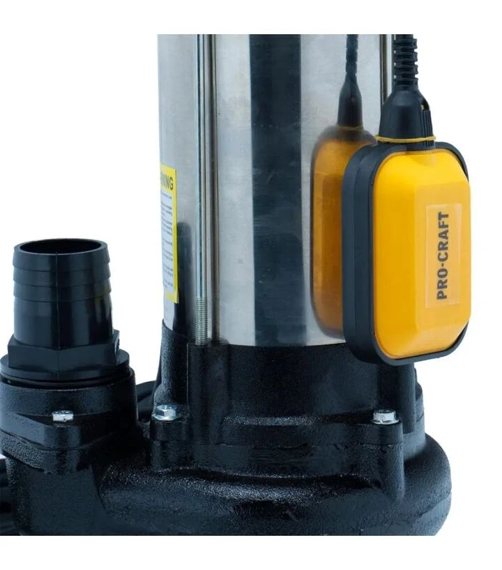 Procraft PN 21 оснащен корпусом из нержавеющей стали, что повышает устойчивость к коррозии при работе с агрессивными и загрязненными жидкостями. Насос пропускает частицы до 35 мм и подходит для работы в выгребных ямах, дренажных колодцах и участках с избыточной влагой. Поплавковый выключатель автоматически выключает устройство при низком уровне воды, защищая его от работы всухую. Защита IP68 позволяет погружать насос на глубину до 8 м.
