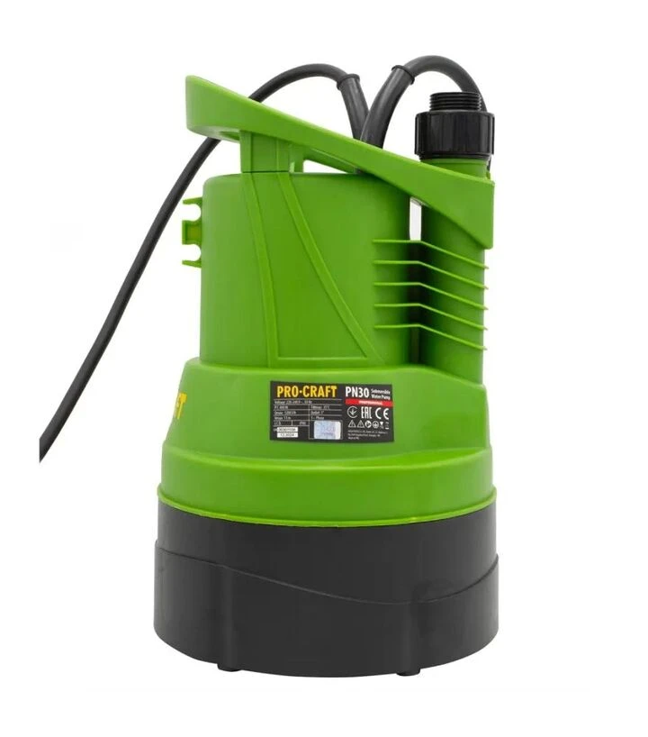Procraft PN 30 - погружной насос для чистой и грязной воды, который обеспечивает стабильную производительность и надежность в хозяйственном использовании.