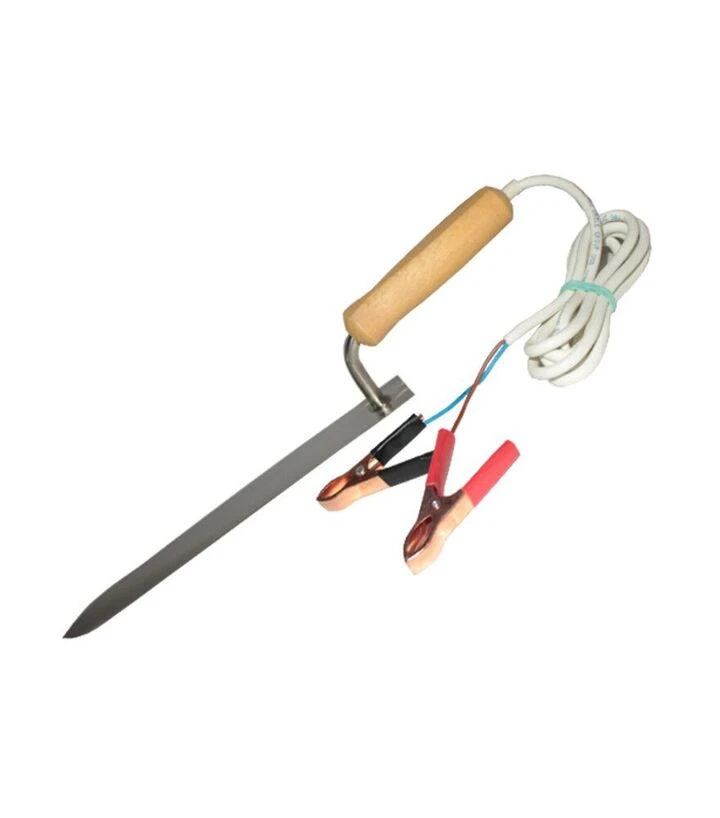 Пчеловодный электрический нож предназначен для распечатывания медовых сотов перед откачиванием мёда. Используется для ровного срезания забруса с поверхности рамок и подготовки их к медогонке. Лезвие длиной 280 мм изготовлено из нержавеющей стали, что обеспечивает устойчивость к влаге, мёду и воску. Электроподогрев поддерживает стабильную температуру лезвия, благодаря чему работа выполняется без рывков и лишних усилий даже при плотном забрусе.