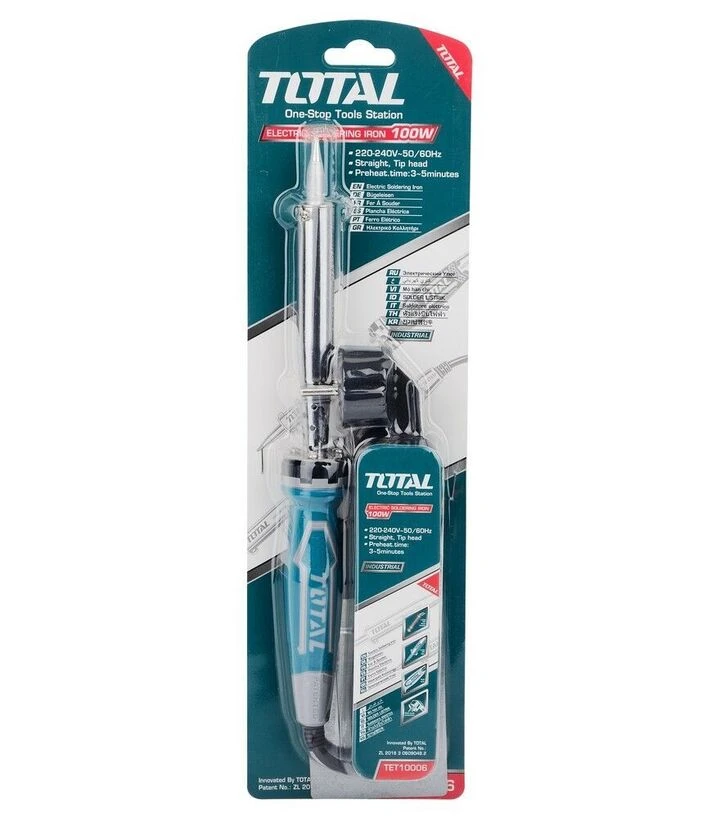 Электрический паяльник TOTAL TET10006 сочетает высокую мощность, стабильность и удобство, делая его практичным инструментом для регулярных и более сложных ремонтных работ.