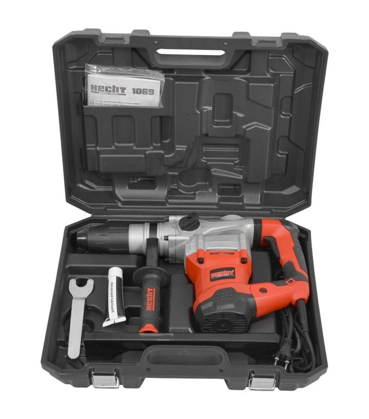 HECHT 1069 - инструмент для тех, кто работает с серьёзными строительными задачами. Патрон SDS-max позволяет использовать оснастку большого диаметра, что удобно при сверлении крупных отверстий или работе с тяжёлыми материалами. Мощный двигатель и сбалансированная ударная система обеспечивают стабильный процесс сверления без чрезмерных перегрузок.