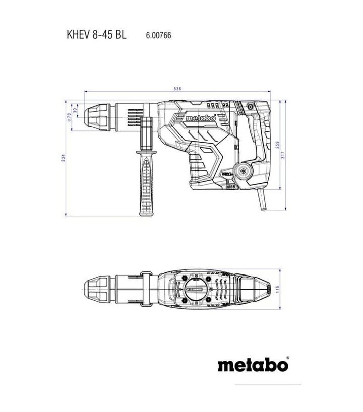 Metabo KHEV 8-45 BL - это сочетание максимальной мощности, современной электроники и надежной конструкции. Инструмент создан для сложных задач в бетоне, где важны сила удара, выносливость и стабильная работа под нагрузкой.