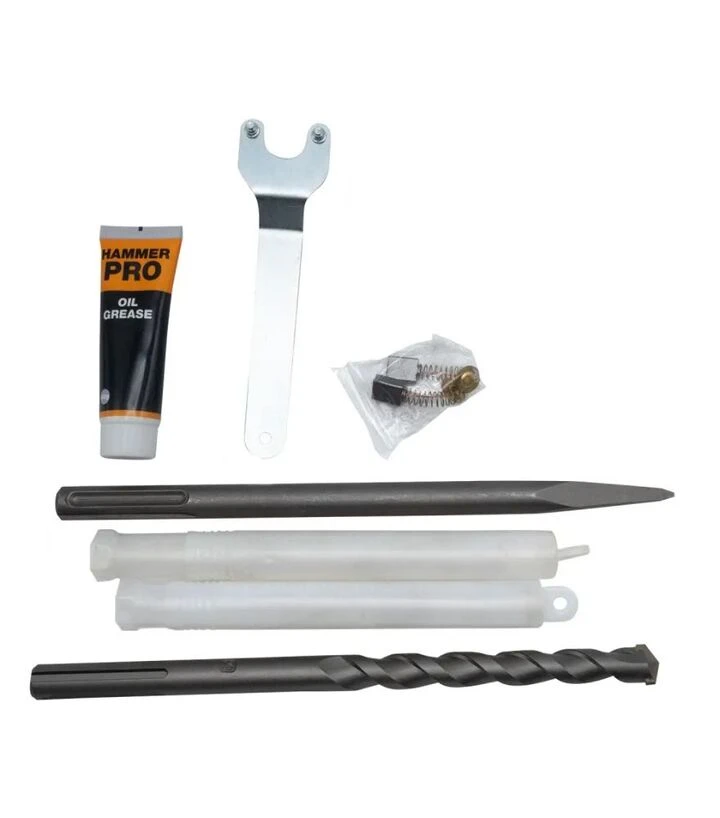 Профессиональный инструмент для тяжёлых задач. Подходит для бурения больших отверстий в бетоне и камне. Поставляется со всеми базовыми аксессуарами.