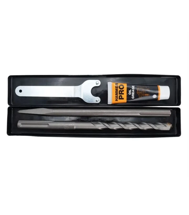 Подходит для специалистов, выполняющих сложные задачи: бурение больших отверстий, демонтаж, работы по камню и бетону. Полный комплект позволяет сразу начинать работу.