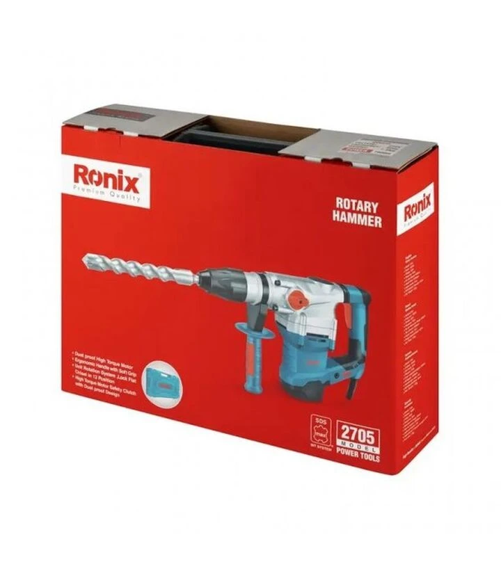 Ronix 2705 стане у пригоді при роботах із бетоном, каменем чи цеглою. Потужний двигун і патрон SDS-max дозволяють використовувати велику оснастку. Захисна муфта підвищує безпеку, а комплектація забезпечує готовність до роботи з першого дня.